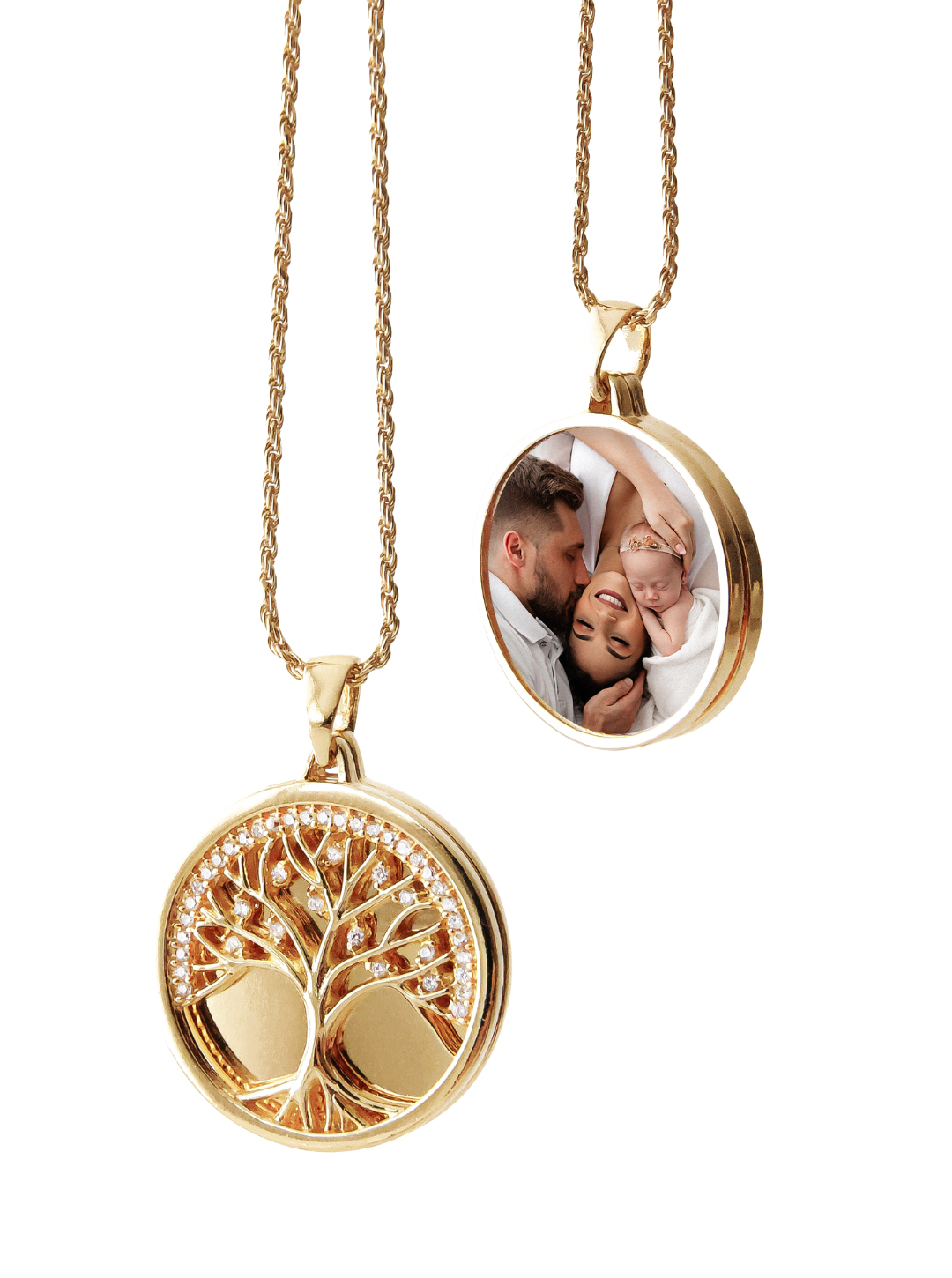 Guarde consigo a beleza das gerações que vieram antes e o amor que floresce para o futuro. Este relicário celebra os laços eternos da família, capturando com delicadeza a elegância das vidas que se entrelaçam e florescem ao longo do tempo.