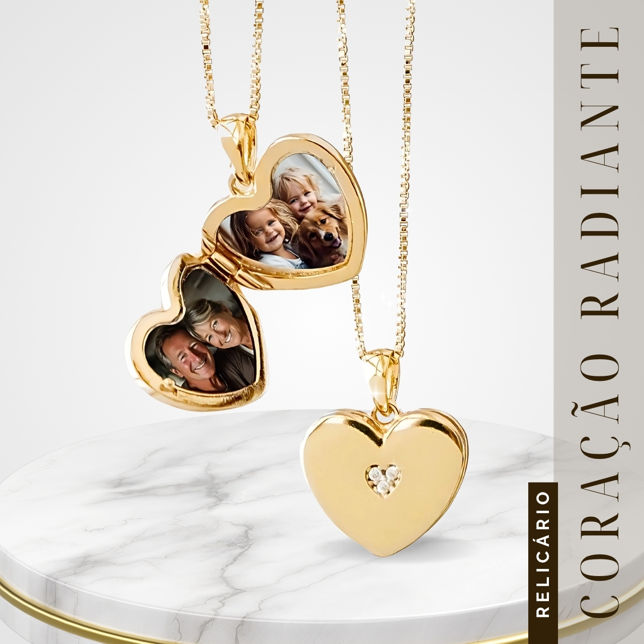 Nosso Relicário Premium Vicentini é mais que uma joia: é um símbolo de amor e lembrança. Criado com metais nobres Maciços com acabamento exclusivo em banho Prime de Ouro 18k em 10 camadas. Combina beleza, sofisticação e durabilidade.